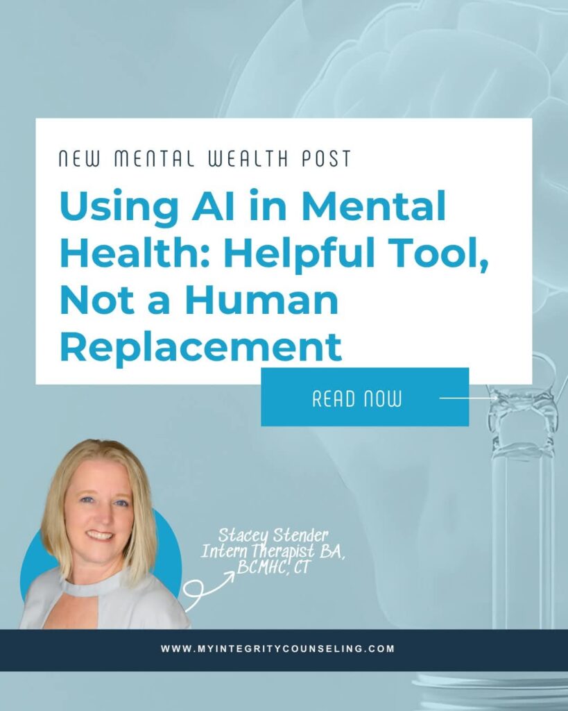 Telehealth therapy, like My Integrity Counseling offers, can provide a safe, confidential, and accessible to a licensed therapist. By bringing AI tools into the therapeutic conversation, your therapist can help you identify what is helpful, what may need adjustment, and what may not be appropriate for your goals.